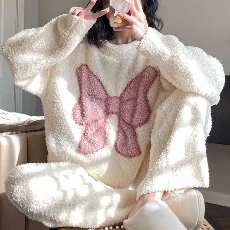 ひんやりボトムス 2024 秋 カートゥーン パジャマ レディース 裏起毛厚手 ホームウェア セット 補正下着 パジャマ