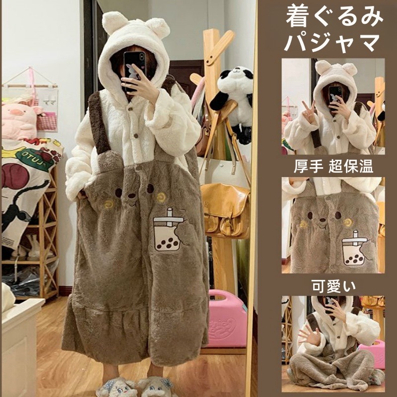 着ぐるみパジャマ 冬保温 可愛いくまちゃん 裹起毛 パジャマ レディース 厚手暖かい 部屋着 フード付き ネグリジェ 屋内 屋外 ルームウェア