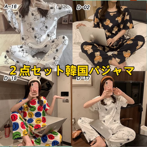 2点セット韓国ファッション 長袖と半袖パジャマ 長ズボンと半ズボンパジャマ スリーパー パジャマ ルームウェア 上下セット パジャマ