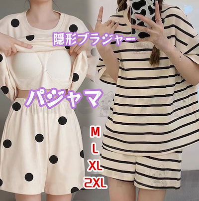 20TYPE 2点セット韓国ファッション 大人気 夏新作 パジャマ 隠形ブラジャー ルームウェア 上下セットレディース 半袖