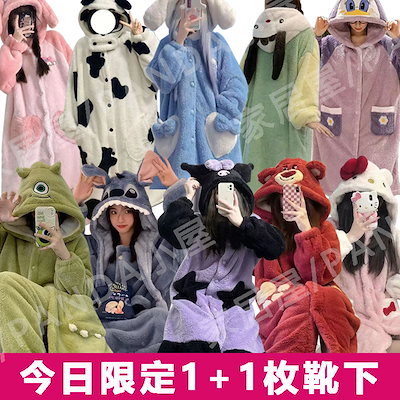 出荷が早い 3+2枚靴下 韓国パジャマ 2点セット かわいいモンスター ルームウェア 上下セット 修学旅行大人気可愛の学園グループ服 モコモコバスローブ着ぐるみコスプレ