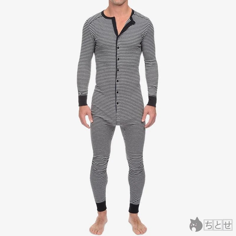 パジャマ メンズ おしゃれ ボーダー柄 つなぎルームウェア オールインワン ワンピース ナイトガウン カジュアル 快適 長袖 長ズボン 春秋冬 寝巻き 寝間着