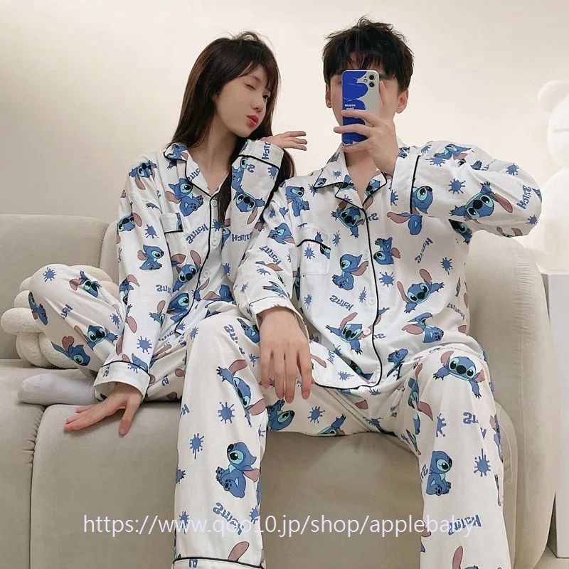 スティッチ パジャマ 部屋着 パジャマ 可愛い キャラクタールームウエア レディース 春 秋 長袖+長ズボン カップルパジャマ男女兼用 部屋着