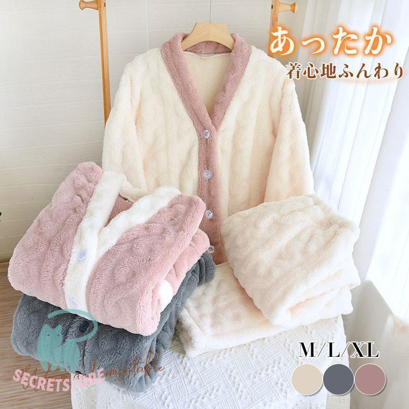 パジャマ ルームウェア レディース 厚手 寝巻き 秋 冬 長袖 前開き 寝巻き 防寒 上下セット 部屋着 かわいい もこもこ あったか おしゃれ