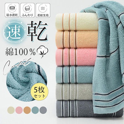 タオル 5枚 セット まとめ買い デイリータオル 速乾 しっかり 吸水 デイリー 毎日 薄手 綿100% その他