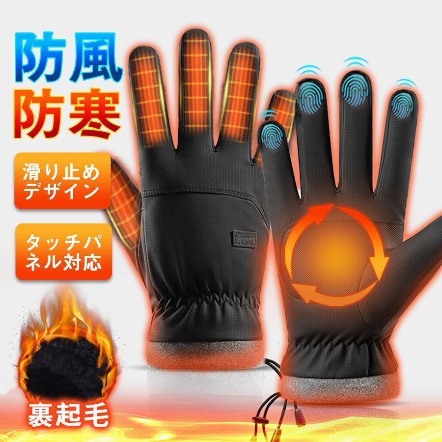 グローブ 手袋 メンズ 暖かい 裏起毛 防寒 自転車 バイク リストベルト 滑り止め 撥水 加工生地 通期ホール クリップ レディース ユニセックス