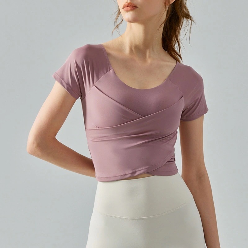 人气新作おしゃれヨガウェア クロスオーバー痩身胸パッド付きワンピース ヨガウェア痩身 レディース 韓国ファッションヨガウェア お家ヨガウェア