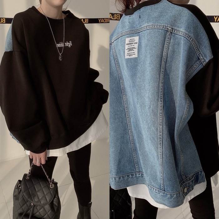 スウェット レディース トップス トレーナー プルオーバー ドッキング 切り替え デニム フリーサイズ トレーナー