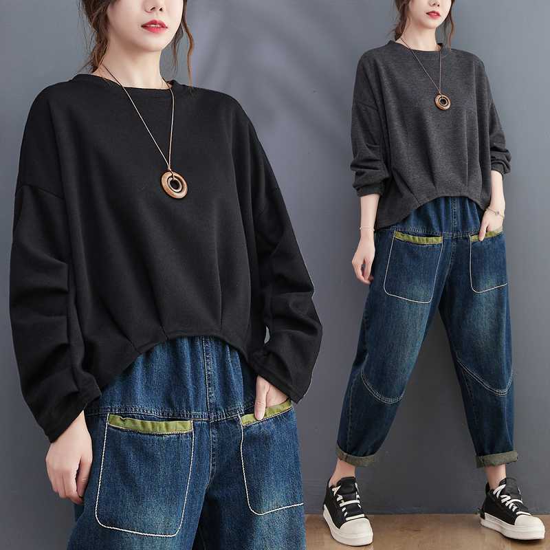 春秋服更新 ロング 長袖 韓国ファッションゆったりした トップス ルームウェア 大きいサイズ レディース 男女兼用