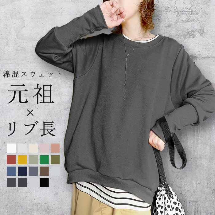 着心地の良コットン混全20色リニューアル レディース スウェット リブ長 トップス 長袖 無地 ルームウェア 部屋着 [郵3]^t015^