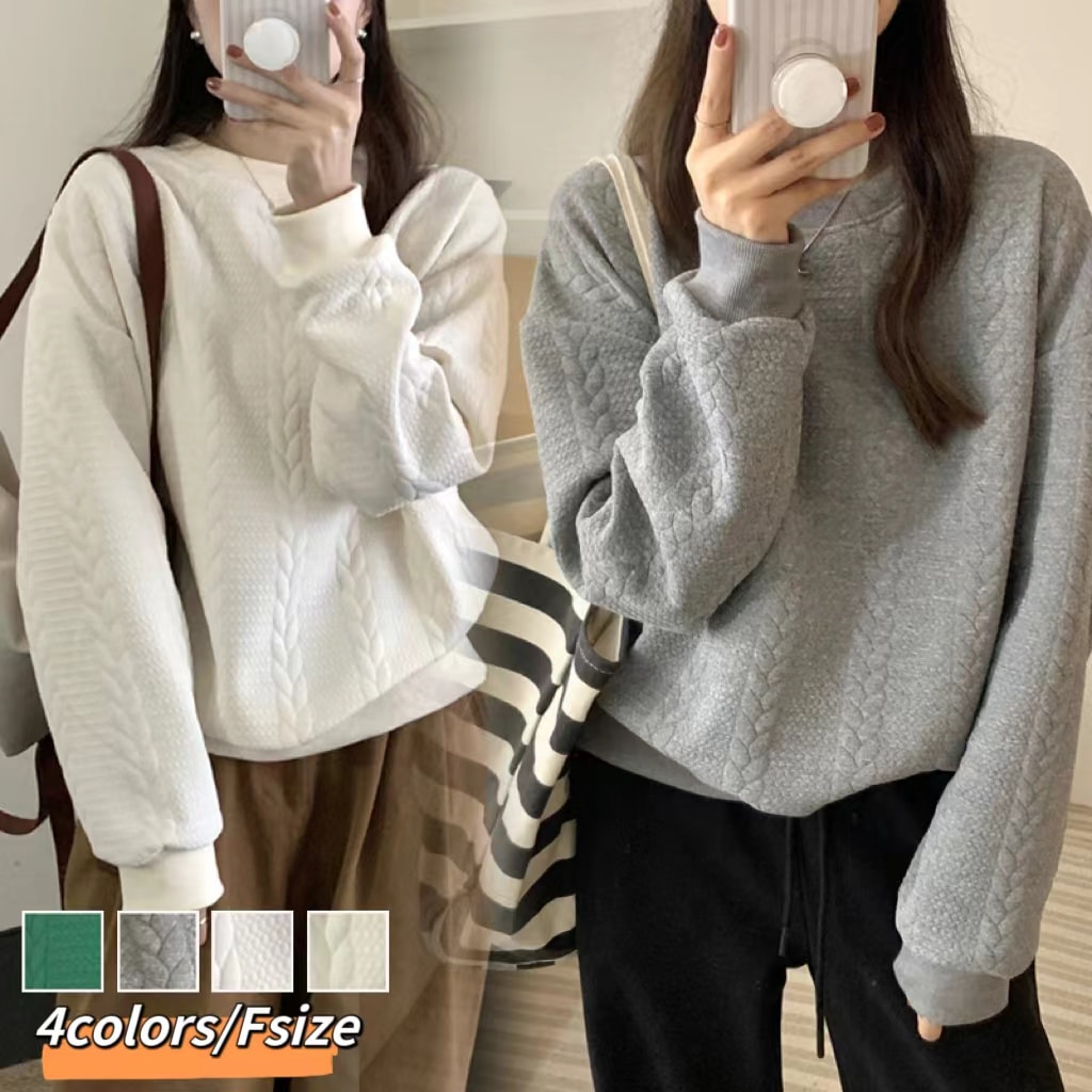 長袖スウェット 型押し エンボス加工 トップストレーナー スウェット 型押しプルオーバー 韓国ファッション トレーナー