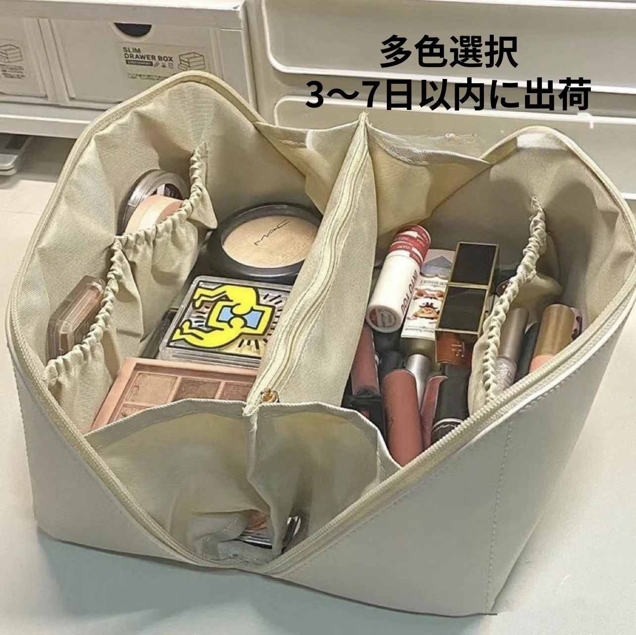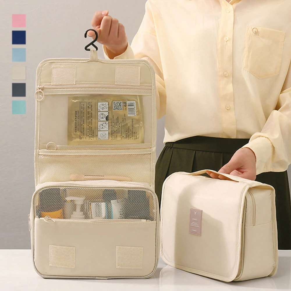 メイクポーチ コスメティックバッグ 大容量 コスメポーチ 化粧品入れ 収納ポーチ 化粧バッグ ソリッドカラー ジッパー付きフラップトイレタリーバッグ トラベルポーチ ポータブル コスメティックバッグ