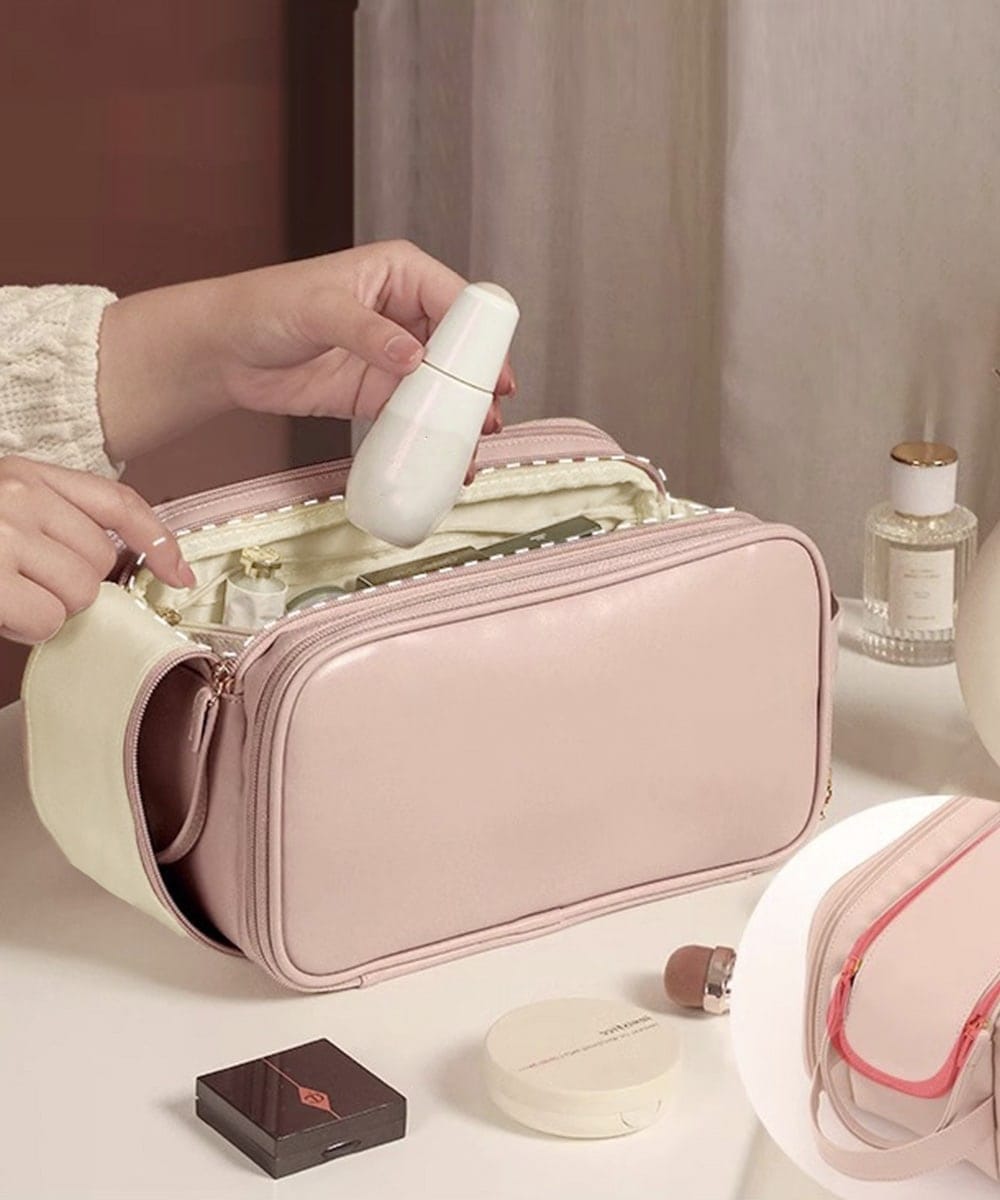 化粧ポーチ レディース 収納ポーチ 無地 持ち手付き コンパクト 合皮 自立 仕分け 大容量 機能的 防水 柔らかい 小物入れ シンプル ポーチ