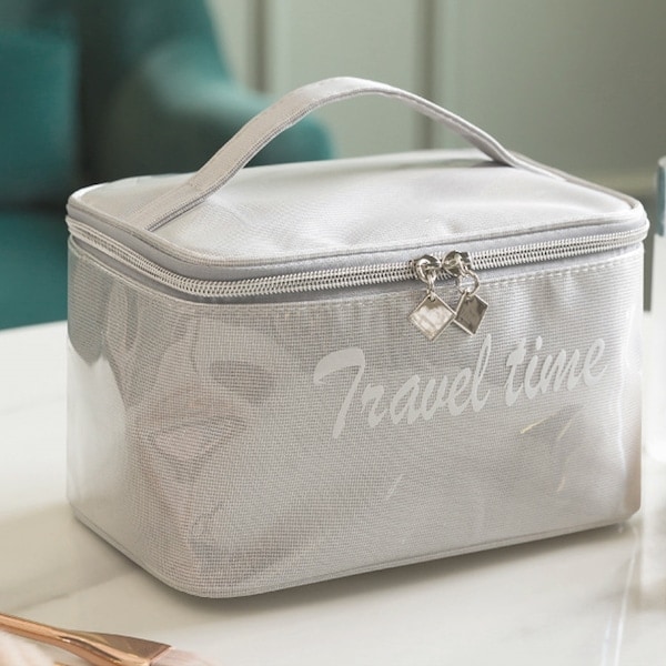 メイクポーチ 縦型 大容量 仕切り付き メッシュポーチ付き 持ち運び 自立でき 化粧ポーチ バニティ コスメポーチ 化粧品収納 メイクブラシ入れ 軽量 ファスナー 旅行 出張 持ち手も付き コンパクト