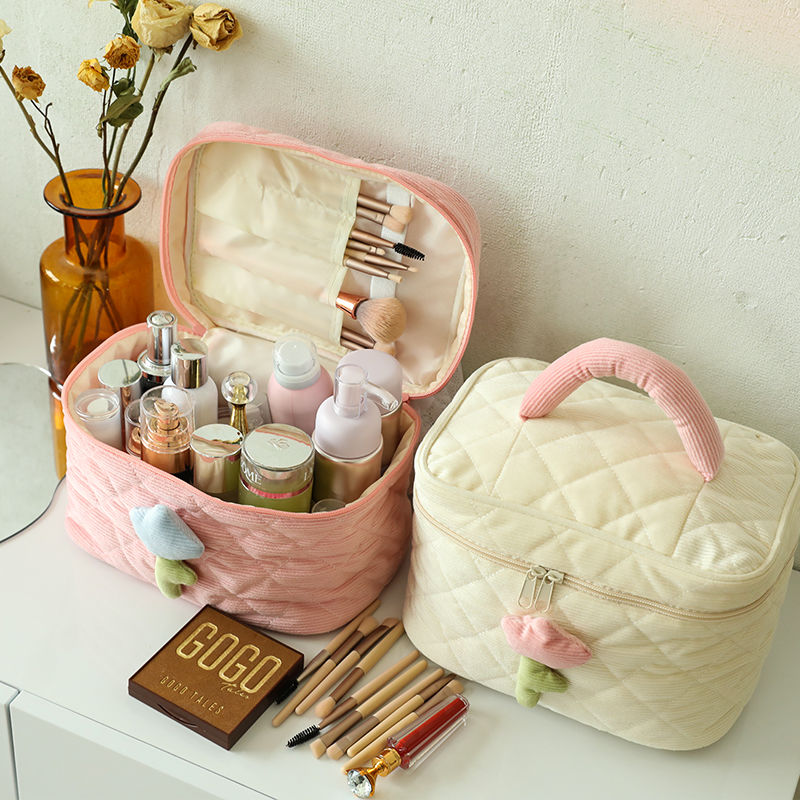 2024新しいコーデュロイの化粧品袋の貯蔵の携帯用大きい容量の洗浄の化粧品の貯蔵袋 化粧ポーチ ポーチ