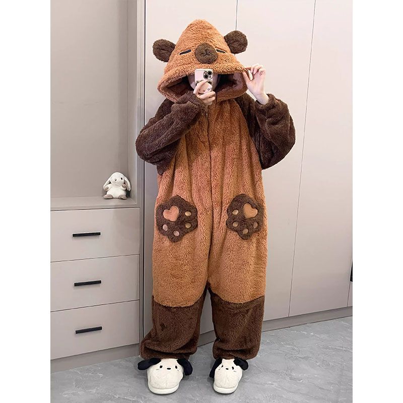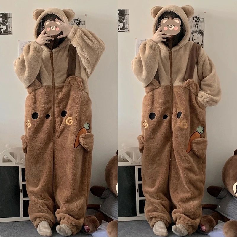オールインワン パジャマ アウター 秋 冬 厚手 着ぐるみパジャマ もこもこパジャマ ルームウェア パジャマセット 韓国ファッション パジャマ