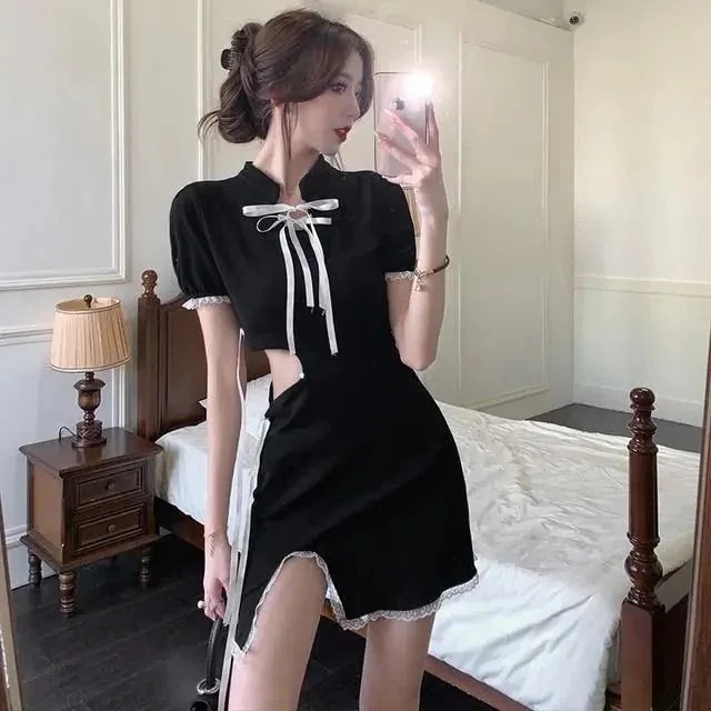 コスプレ ハロウィン 大人気ロリスーツパーティードレスワンピース ギャルワンピースヒップスカート夏チャイナドレス黒スカートコスプレドレス メイド服 メガ割
