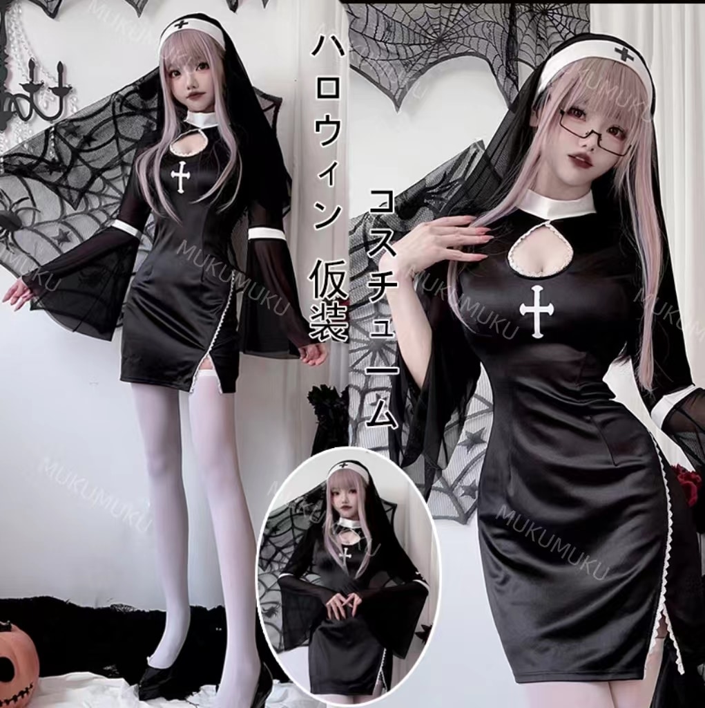 ハロウィン仮装 ロリータ シスター服 ダークゴシックコスプレ衣装 ハロウィン コスプレ大人 学園祭 文化祭 ワンピース クリスマスコスプレ コスチューム