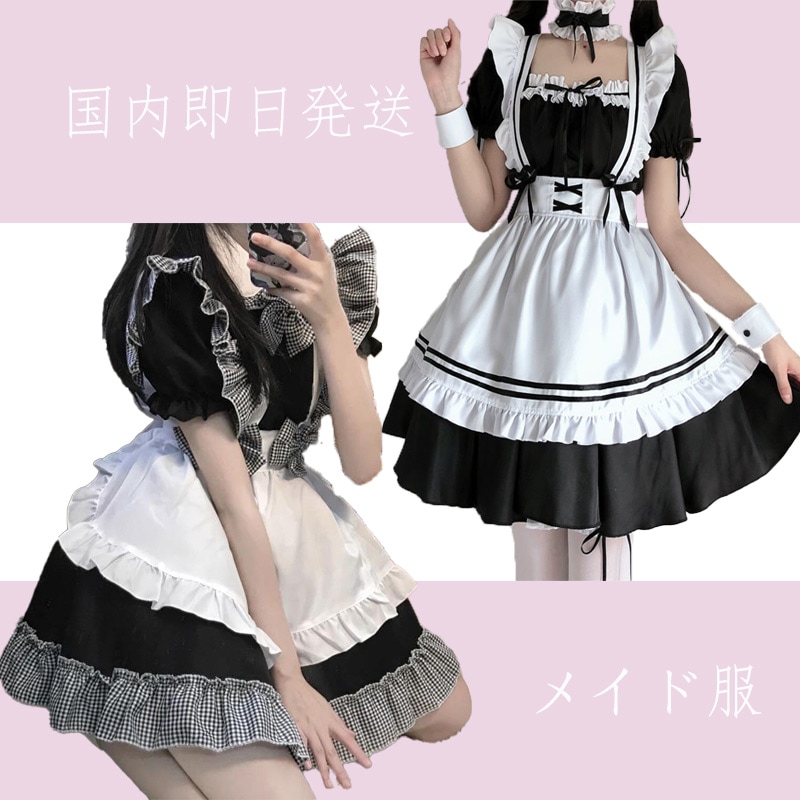 国内24時間内発送 追加料金なし 7 10点セット メイド服 コスプレ 白黒メイド服 ロングスカートコスプレ上下セット 長袖 スカートスクール かわいい日常ワンピースメイド女装