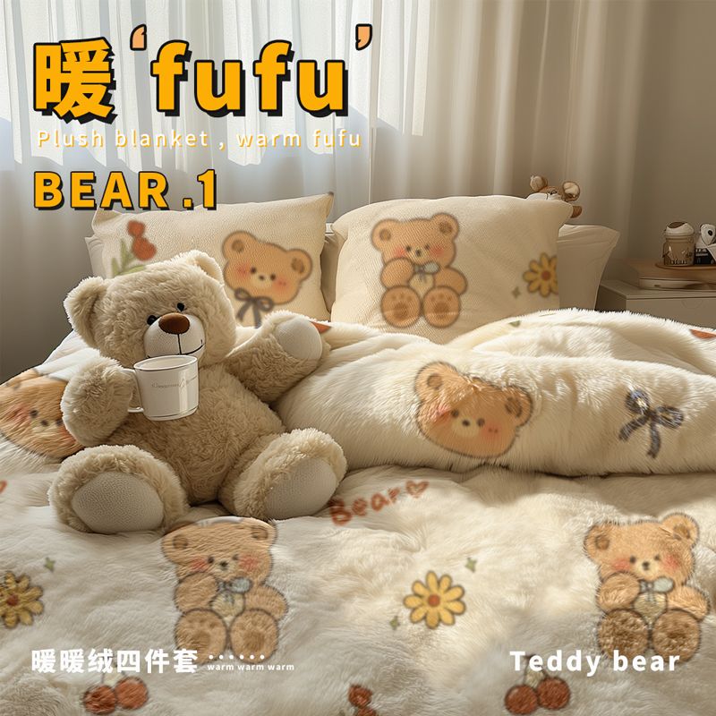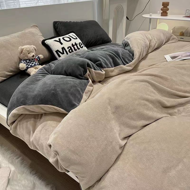 秋冬に牛乳のベルベットを厚くしたフランネルのベッド用品4点セットの布団カバーとベルベットのシーツ3点セット 布団カバー