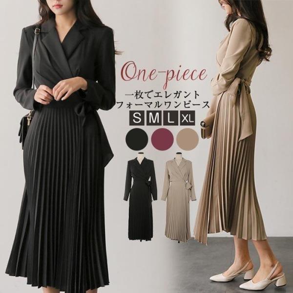 の入荷 在庫一掃 ワンピース レディース 春 きれいめ 韓国風 ロング丈 長袖 プリーツワンピース aライン 上品 着痩せ お洒落 大人 卒業式 母 通勤 OL 二次会