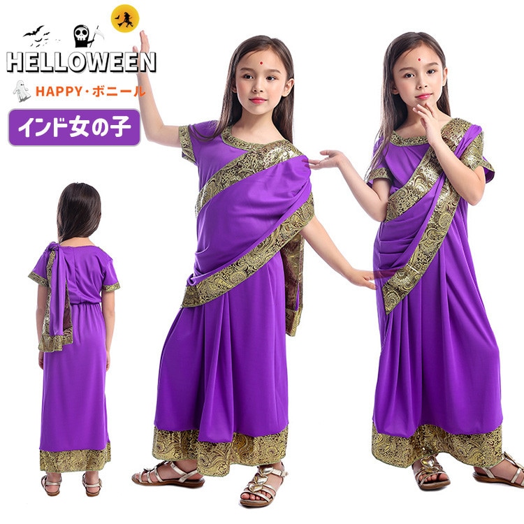 ハロウィン インドガールズ 衣装 子供 民族衣装 伝統 衣装 サリー コスプレ 女の子 インデイアン コスチューム 仮装 なりきり 姫様 プリンセス イベント halloween パーティー 文化祭