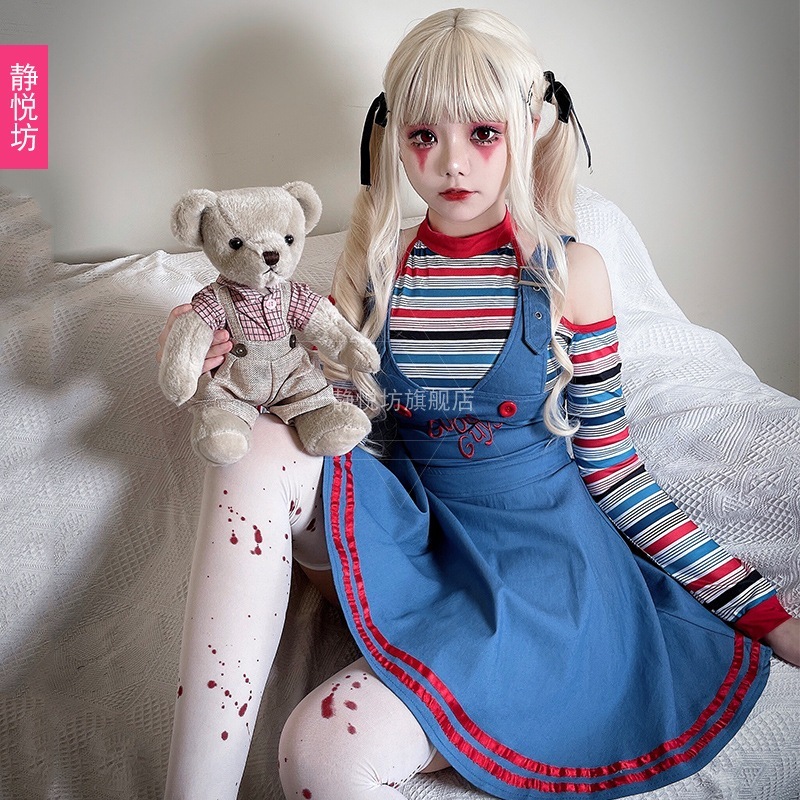 サーカスピエロ衣装ハロウィン大人コスプレ衣装ホラー鬼瓦メイドワンピースゴーストバック ハロウィン