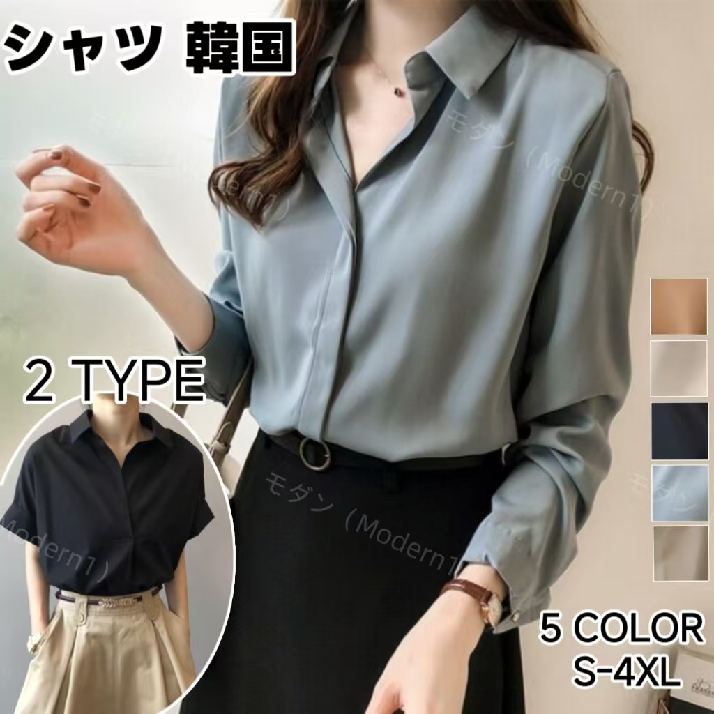 新作 韓国ファッション ブラウス 半袖シャツ 半袖ブラウス レディース オフィス 長袖 ラウンドネック シフォン 大きいサイズ