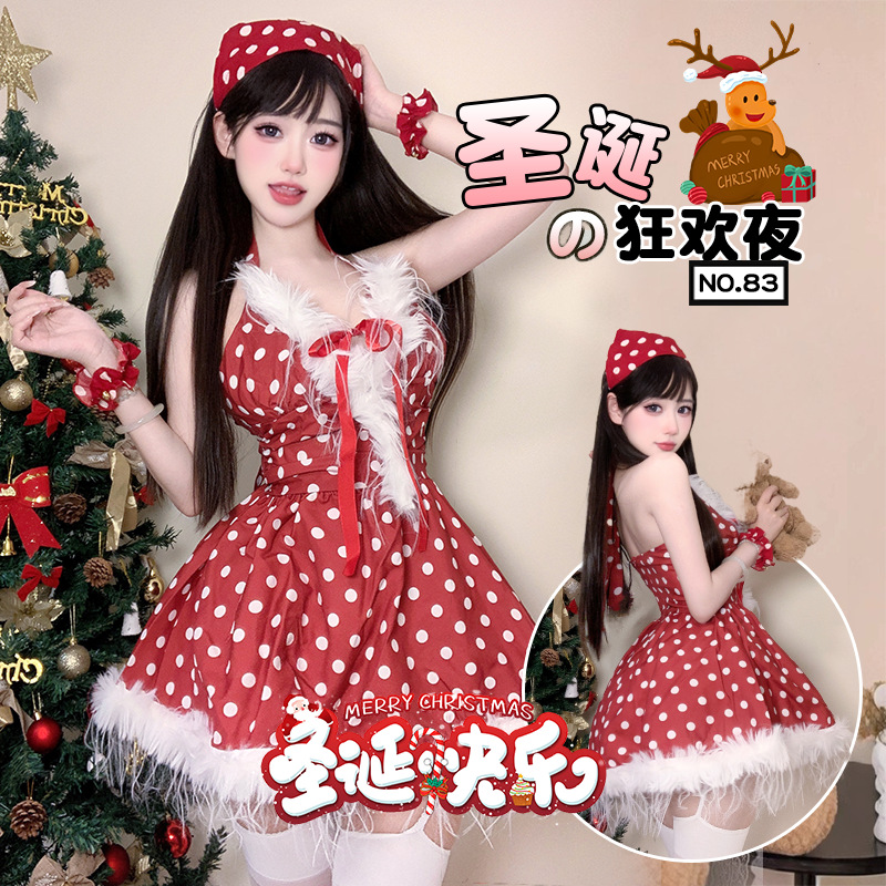 早い者勝ち クリスマス 純欲風 エロいコスプレ かわいい 首掛け赤いキャミソールワンピースセクシークリスマスコスプレ舞台衣装