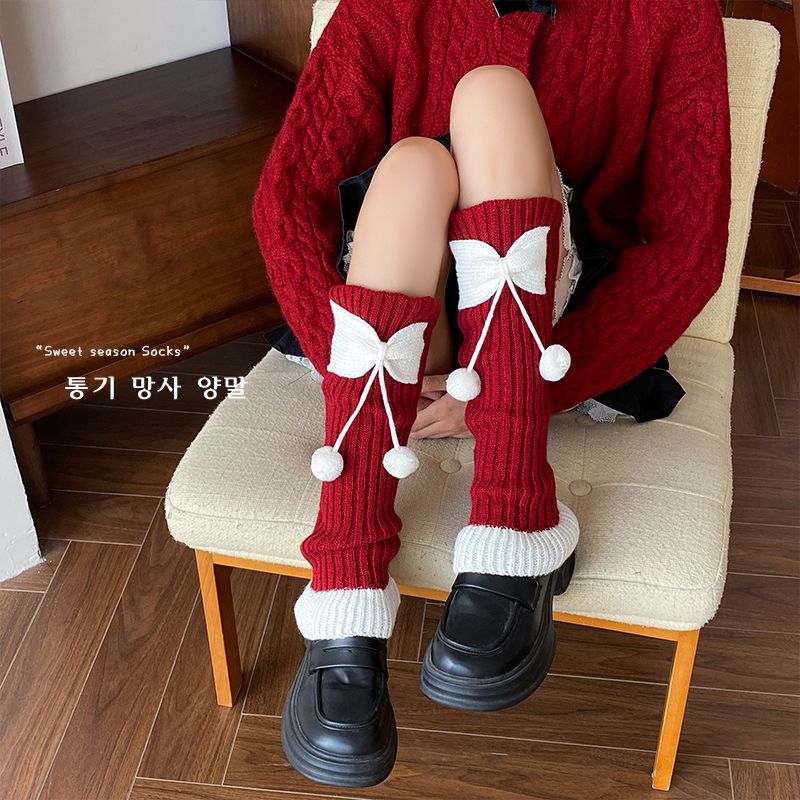 2025クリスマス安可拉紅lolita足袋は春秋冬リボンレース毛玉を厚くして暖かくします新年クリスマス靴下山魅力に変わり クリスマス