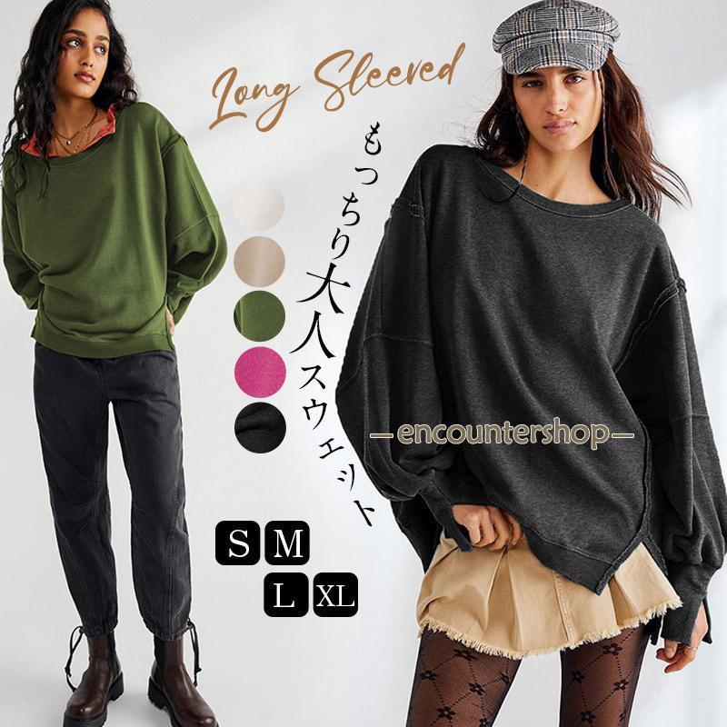 スウェット トレーナー レディース 体型カバー 長袖 大きめ 秋 冬 プルオーバー トップス 無地 50代 40代 30代 20代 黒 ゆったり おしゃれ 大きいサイズ 秋服