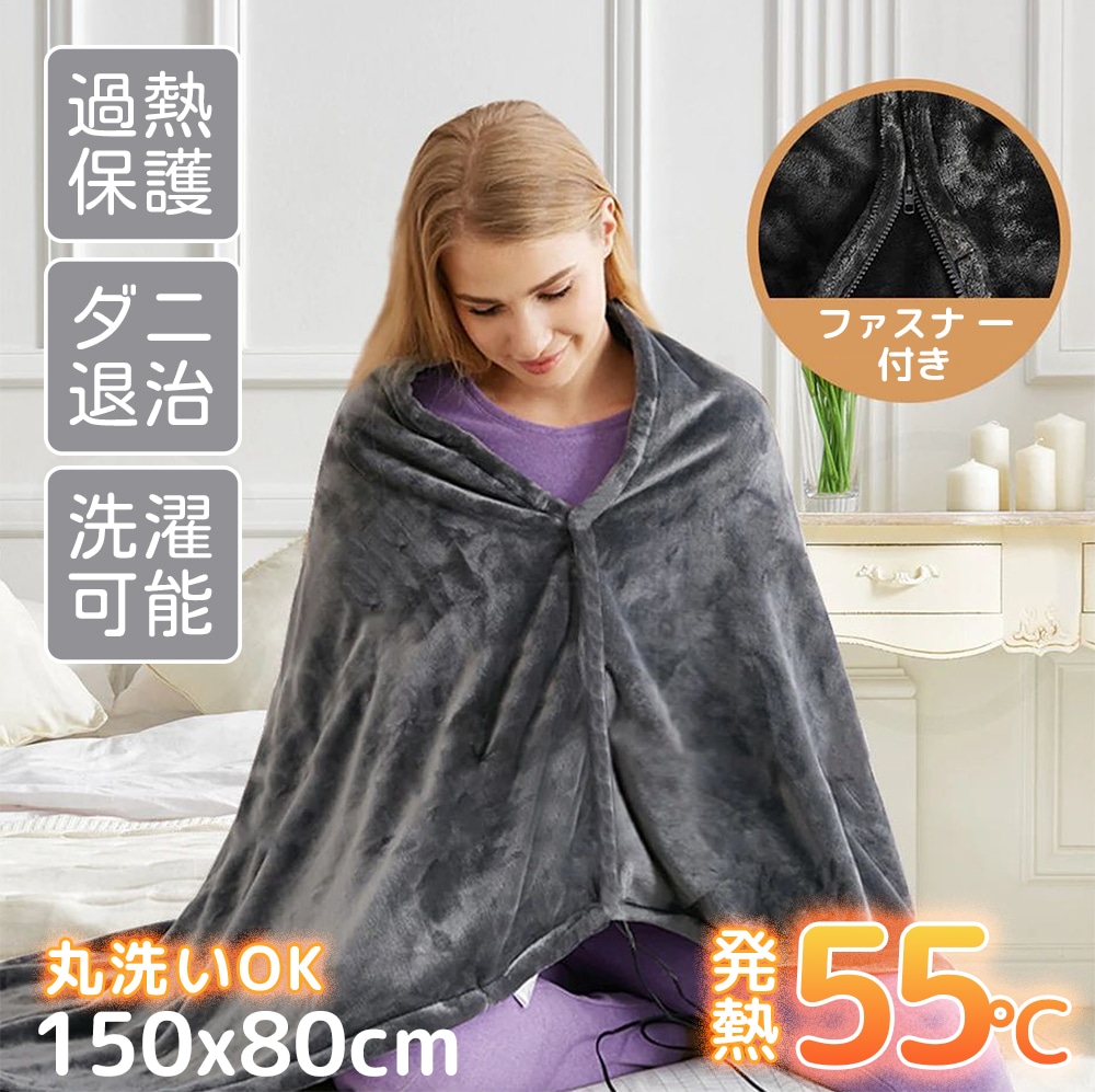 電気毛布 掛け敷き ひざ掛け 30000mAhバッテリー おしゃれ usb 電気 ふわふわ ブランケット 8枚ヒーター 150×80cm 洗える 3段階温度調節 電磁波カット 着る毛布 冬 ヒーター