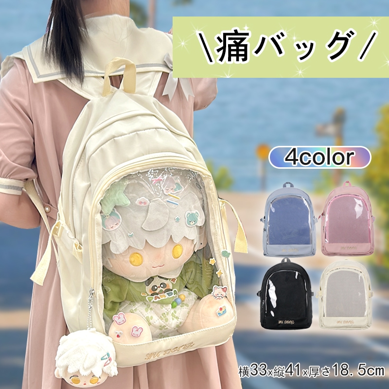 痛バッグ 透明バッグ リュック 大容量 リュックサックトート ショルダー 3WAY 見せバッグ 通勤 通学 かばん 大きめ おしゃれ デイパック 痛バッグ可愛い 透明ポケット通学通勤 缶バッチ 個性