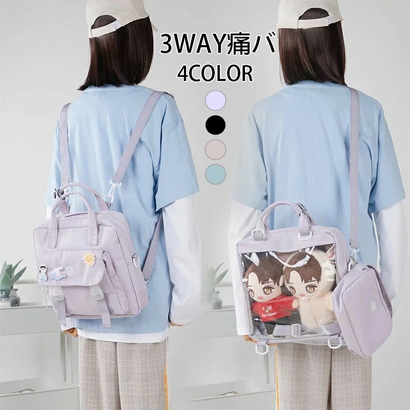 痛バッグ 痛リュック 痛バ トート 透明 ショルダー 3WAY A4サイズ 見せバッグ 透明バッグ リュック トートリュック 撥水 缶バッジ オタ活 通勤 通学 かばん 魅せ 韓国 缶バッチ スクエア