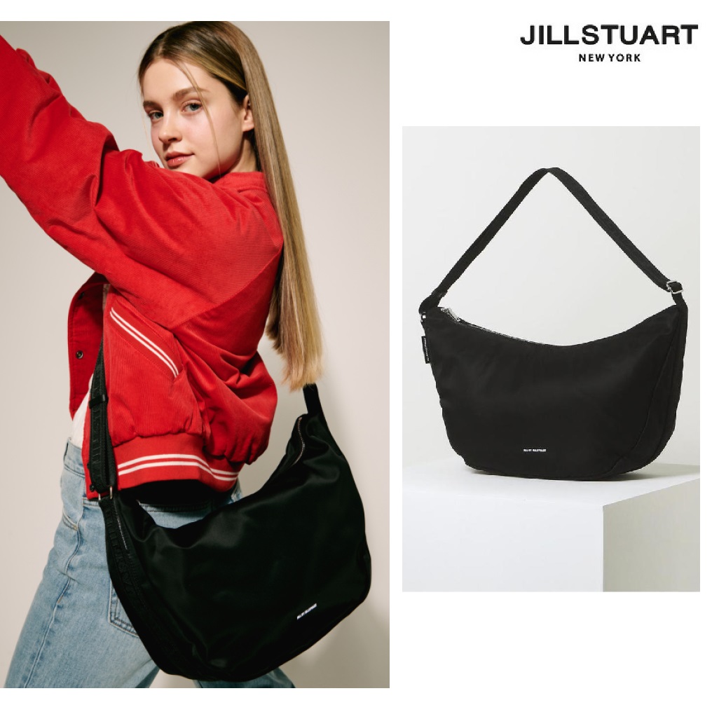 JILL STUART Black Nylon Logo Print Large Hobo Bag 新商品 韓国ファッション 韓国人気 男女共用 学生バッグ デイリーバッグ ショルダーバッグ クロスバック