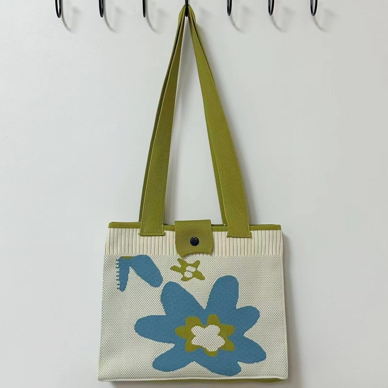 花ニットショルダーバッグ春秋夏大容量手持ちトートバッグアウト便利な収納バッグ ショルダーバッグ