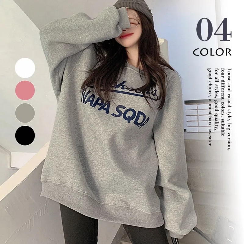 パーカー ゆったりスウェット スウェット 韓国ファッション トレンドはビッグロゴ 秋冬 長袖スウェット レディース 薄いゆったり 百掛け トップス ゆったり