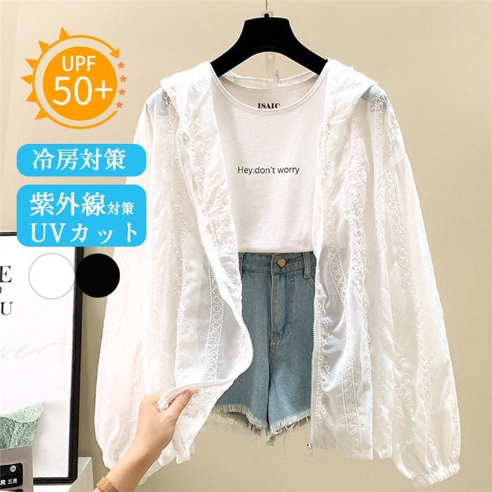 ラッシュガード UVカットレースカーディガン レース トップス 日焼け止め服 ラッシュパーカー 肩掛け 冷房対策 ライトアウター 涼しい 無地