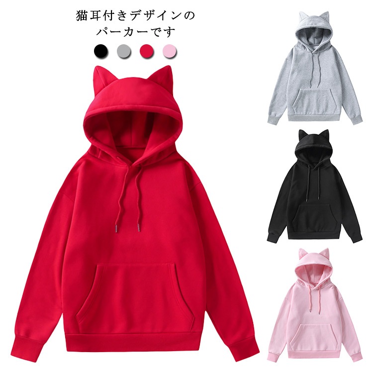 パーカー 耳付き トレーナー 猫 レーディス 春 秋 長袖 プルオーバー トップス おしゃれ かわいい パーカー