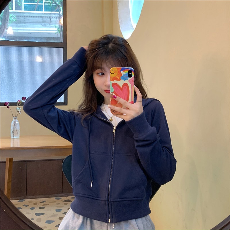 スウェット レディースジップアップアウター ルーズ 韓国風トレンド 長袖 カーディガンスウェットフード付き 隠し腹 隠し腹 韩国棉质卫衣 パーカー
