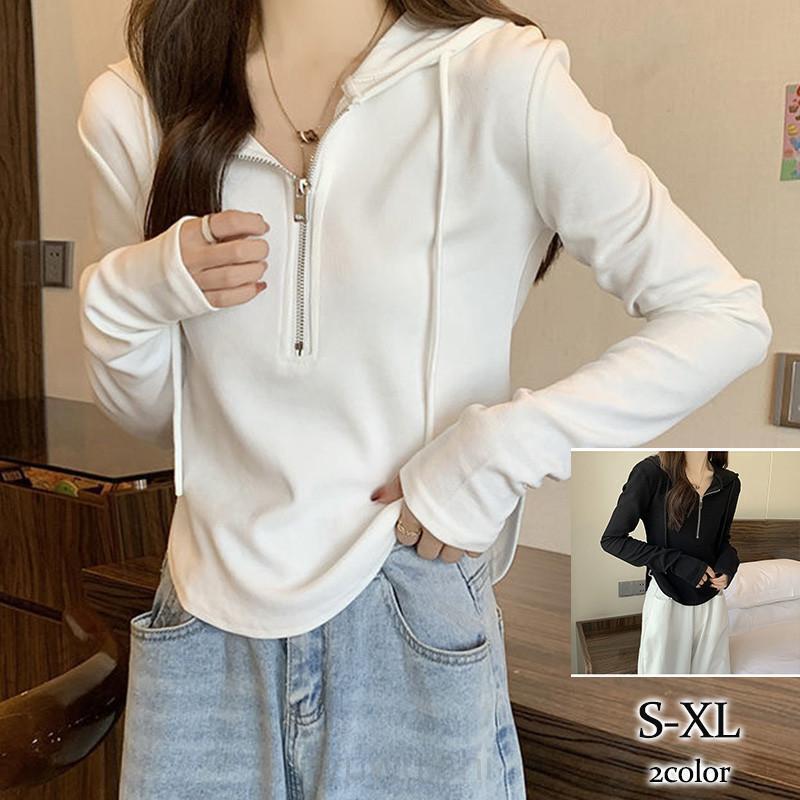 超目玉新品 パーカー レディース 長袖パーカー フード付き トップス プルオーバー 無地 カジュアル シンプル スリム 着痩せ 春秋 おしゃれ 薄手