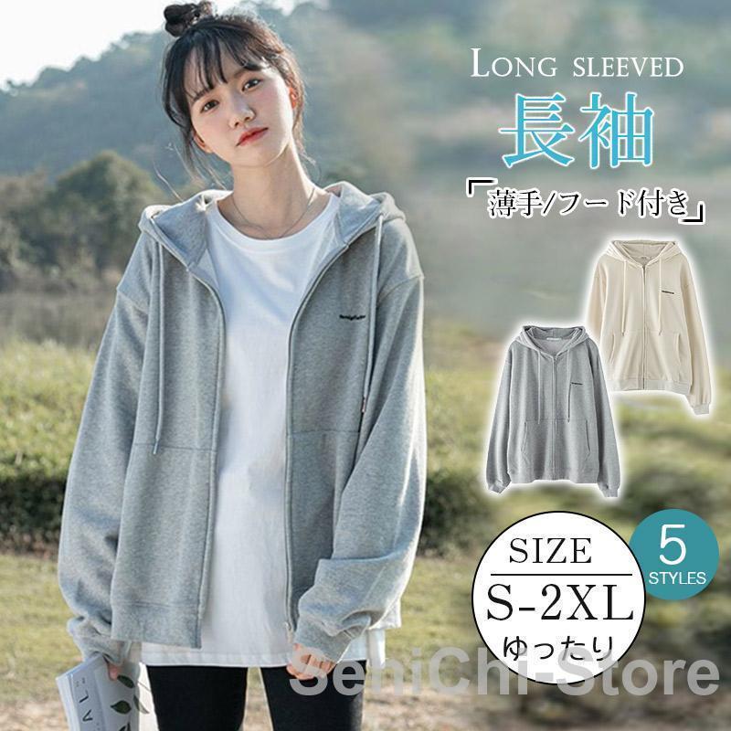ロンT 秋人気 パーカー レディース 軽量 アウター トレーナー 韓国ファッション oversize ゆったり 体型カバー フード付き カーディガン カジュアル長袖スウェッ