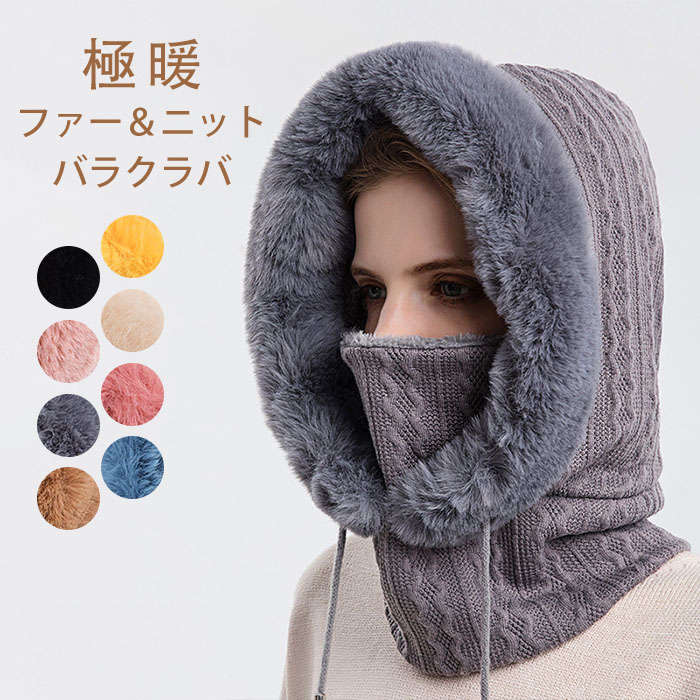 バラクラバ ニット ネックウォーマー レディース メンズ 男女兼用 裏ボア ファー マフラー 帽子 ぼうし フード 防寒対策 あったか グッズ コーデ 耳まで暖か 柔らかくて暖かい ギフト