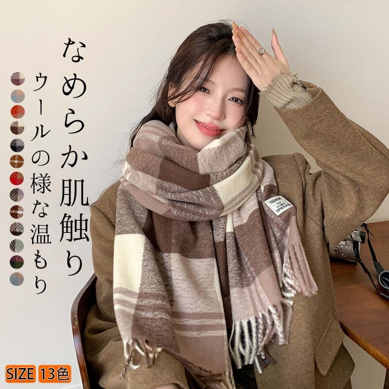 スカーフ コットンウールカシミヤ 防寒 秋冬用 マフラー 大判 厚手 スカーフ レディース メンズ 通勤 通学 おしゃれ 保温&快適 スヌード