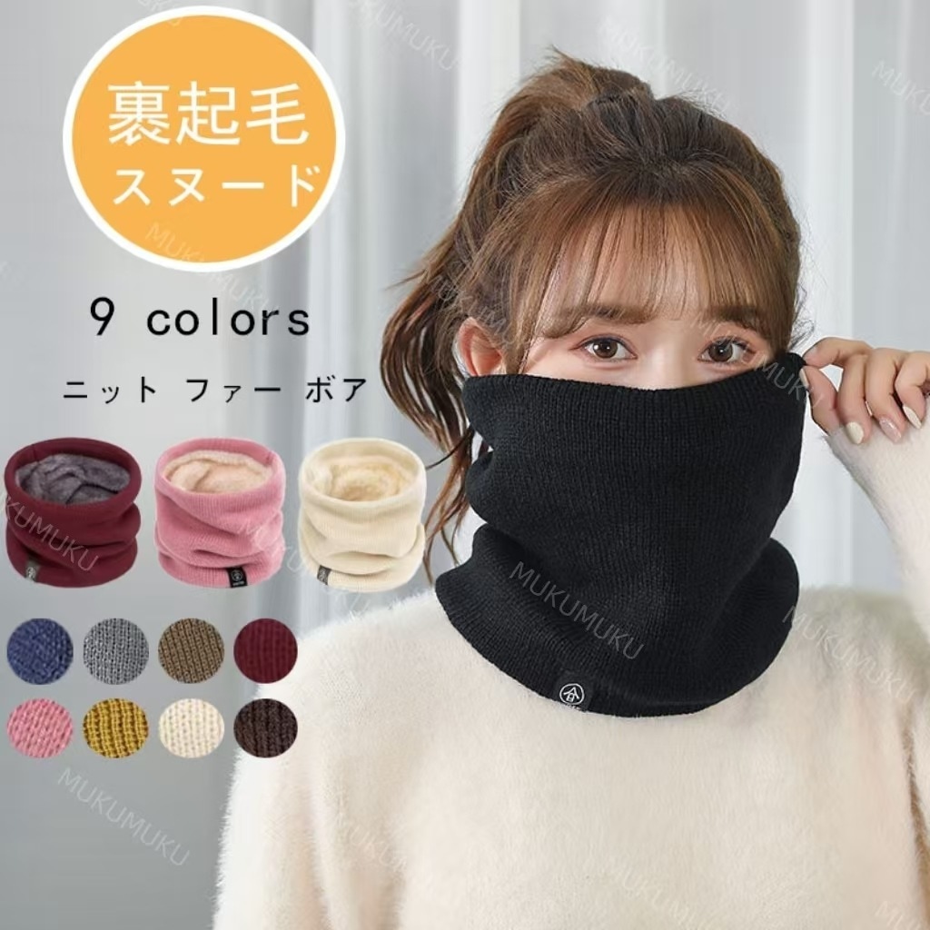 マフラー スヌード ネックウォーマー 裏起毛 裏ファー 全9色 ニット ファー ボア 男の子 女の子 レディース メンズ スヌード