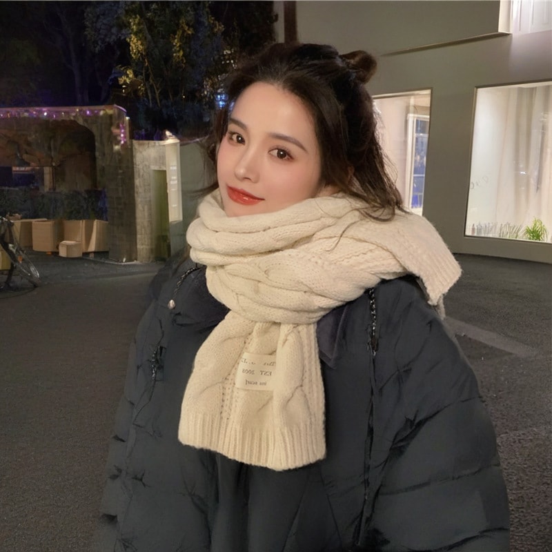 冬の韓国系ふわり暖かいマフラー単色小麦紋小清新ラベリングニット毛糸学生保温マフラー男女 スヌード