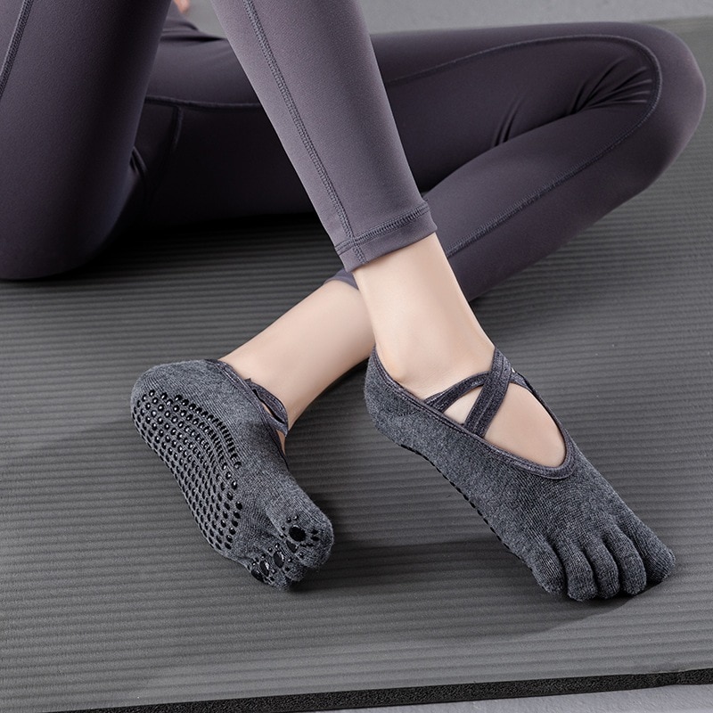 2つ購入すると1つ無料のヨガソックス女性用サマークロスストラップが開きます5本指の滑り止めピラティス 靴下