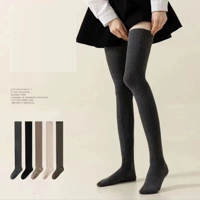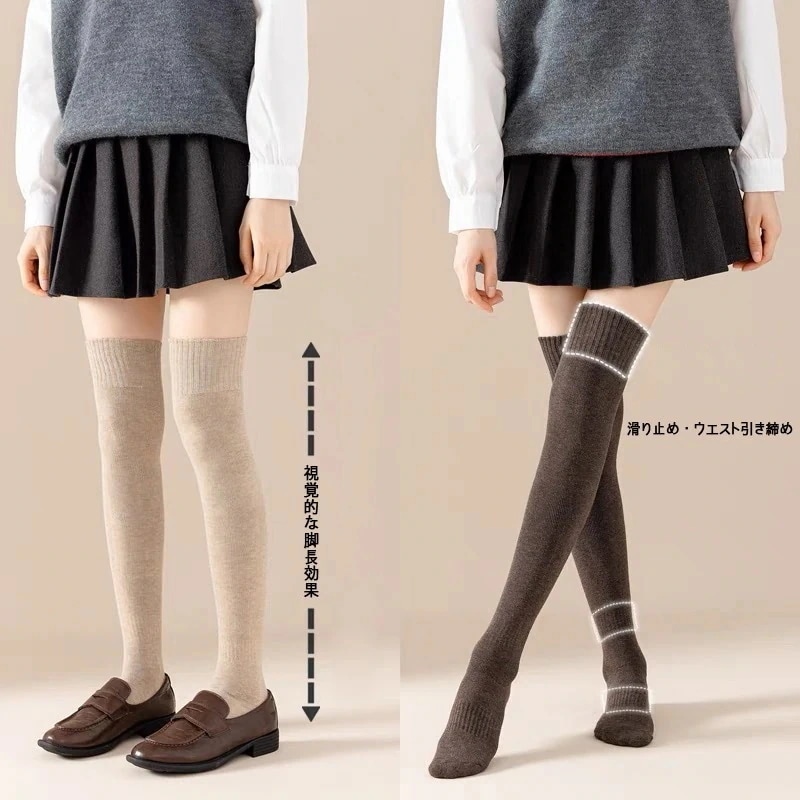 靴下 レディース 綿 ニットソックス 弾性 ストッキング ハイソックス ロングソックス シンプル くつした 防寒 無地 暖かい 厚手 冷え