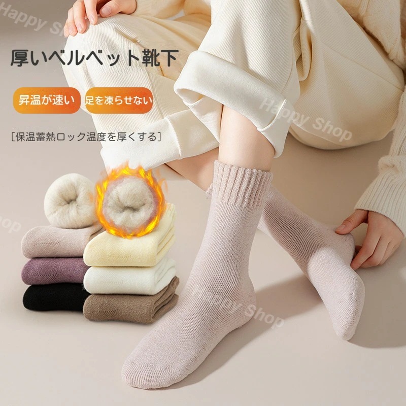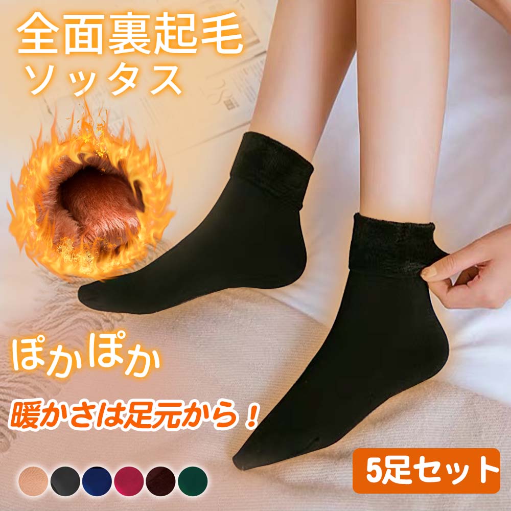 5足セット 裏起毛 ソックス 部屋着 靴下 防寒対策 保温 レディース ロング ストレッチ 秋 冬 ぽかぽか 暖かい フリーサイズ 6カラー よりどり 厚手
