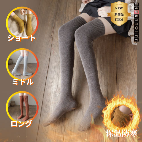 おしゃれコーデ モコモコ保温 秋冬保温 8色展開レディース厚め保温膝上ソックス 靴下